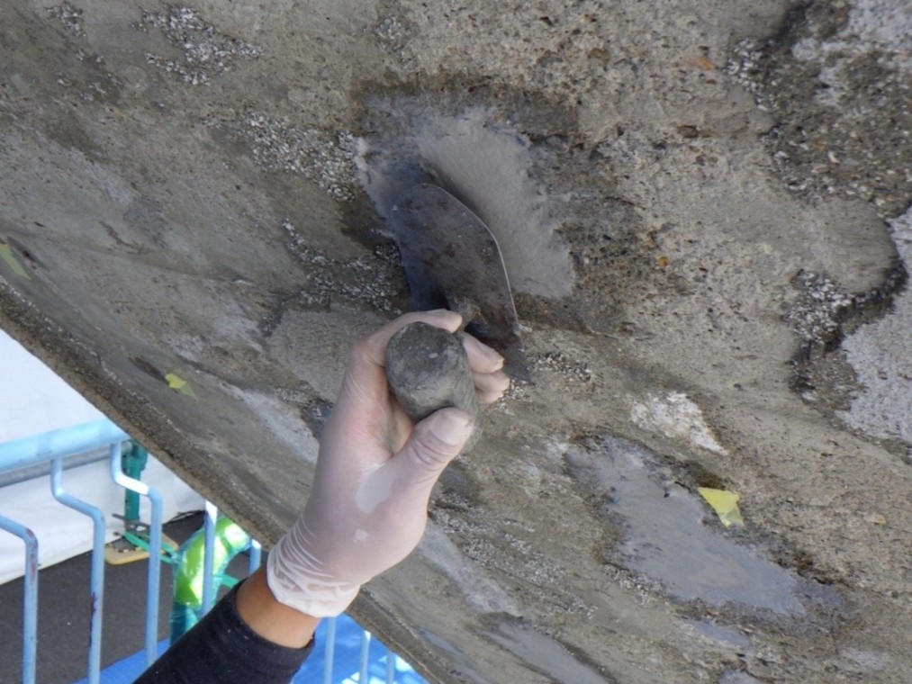 防錆処理完了後は、欠損(露筋)部と充填剤との密着性を向上させるために、